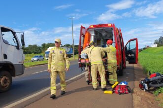 Um grave acidente foi registrado por volta das 17h deste domingo (02) na PR 323 logo após o trevo da Warta, segundo informações da Polícia Militar Rodoviária Dirceu Antonio de Oliveira, 48 anos vinha em alta velocidade e tentou fazer um ultrapassagem em local proibido, vindo a perder o controle do seu veículo e saindo para fora da pista colidindo contra árvores, socorristas da concessionária de pedágio e medicos do Samu estiveram no local para prestar os primeiros atendimentos a vítima, também no local uma aeronave do GRAER que fez o transporte do mesmo até o Hospital Universitário em Londrina.
