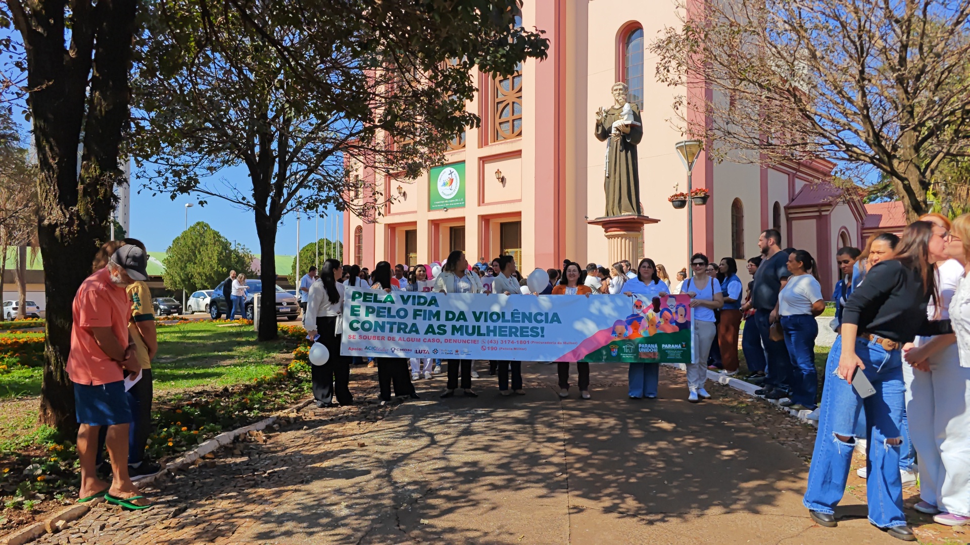 A cidade de Cambé se uniu a mais de 170 municípios do Paraná na 3ª Caminhada Contra o Feminicídio, realizada nesta terça-feira (22), ao meio-dia. A ação, que teve início em frente à Capela Santo Antônio e seguiu até o Centro Cultural de Cambé, reuniu dezenas de pessoas, entre autoridades, servidores públicos e membros da comunidade.