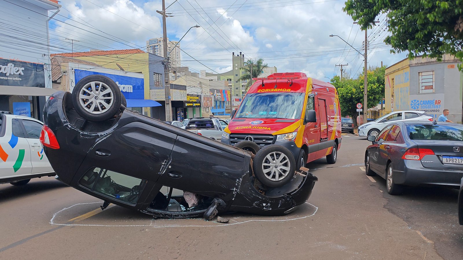 📍 Acidente envolveu colisão com veículo estacionado; condutora sofreu apenas ferimentos leves Um capotamento foi registrado na Avenida Inglaterra, em Cambé, praticamente no horário de almoço desta quarta-feira. A ocorrência mobilizou equipes do Corpo de Bombeiros e chamou a atenção de mora...