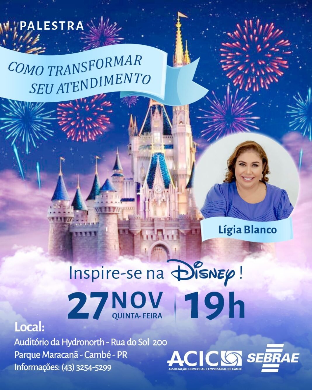 O evento, organizado pela Associação Empresarial de Cambé- ACIC e SEBRAE, promete uma imersão inspiradora no universo da excelência em atendimento, mostrando como os princípios que transformaram a Disney em referência mundial podem ser aplicados em qualquer empresa. A proposta é despertar nos participantes novas formas de fidelizar clientes e criar experiências memoráveis, elevando o padrão de relacionamento com o público.