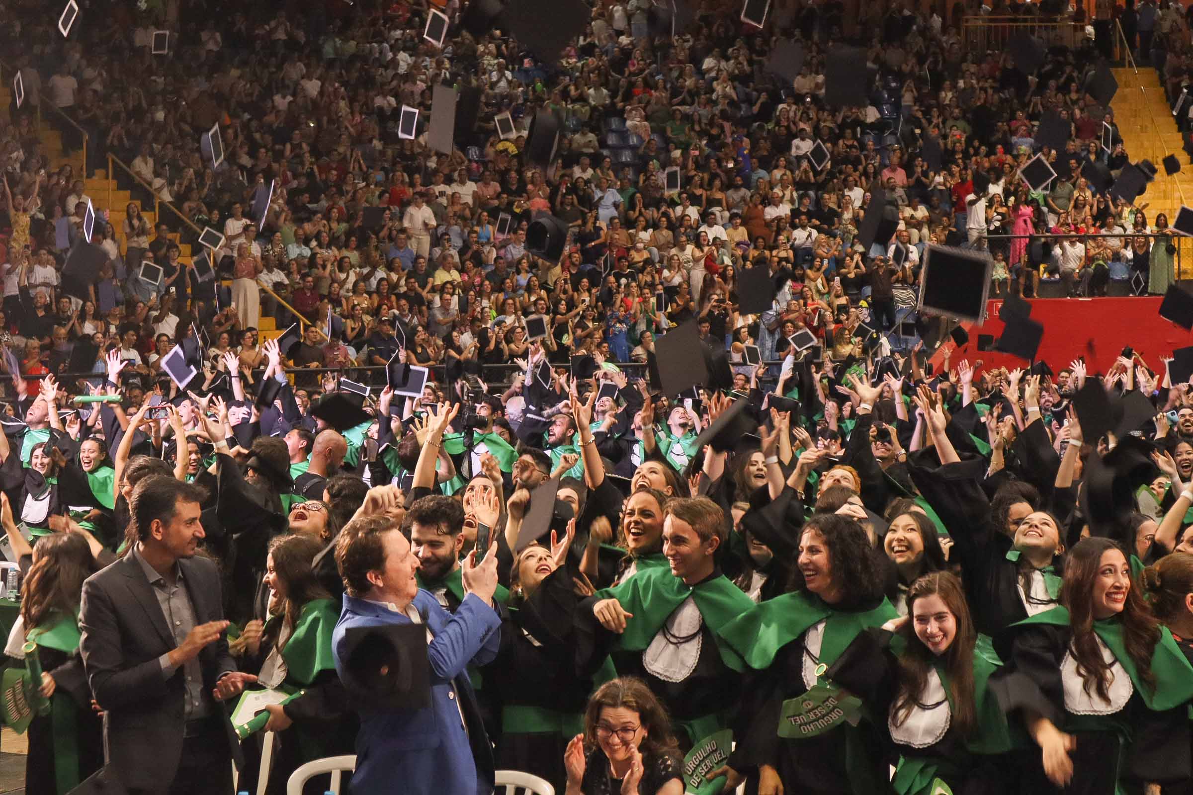 A Universidade Estadual de Londrina (UEL) celebrou a formatura de 1.721 alunos nesta quinta (12) e sexta-feira (13) no Ginásio de Esportes Moringão. Os estudantes, provenientes de 45 cursos de graduação, participaram da cerimônia de Colação de Grau acompanhados por familiares e amigos, marcando o encerramento do segundo período letivo de 2025.
